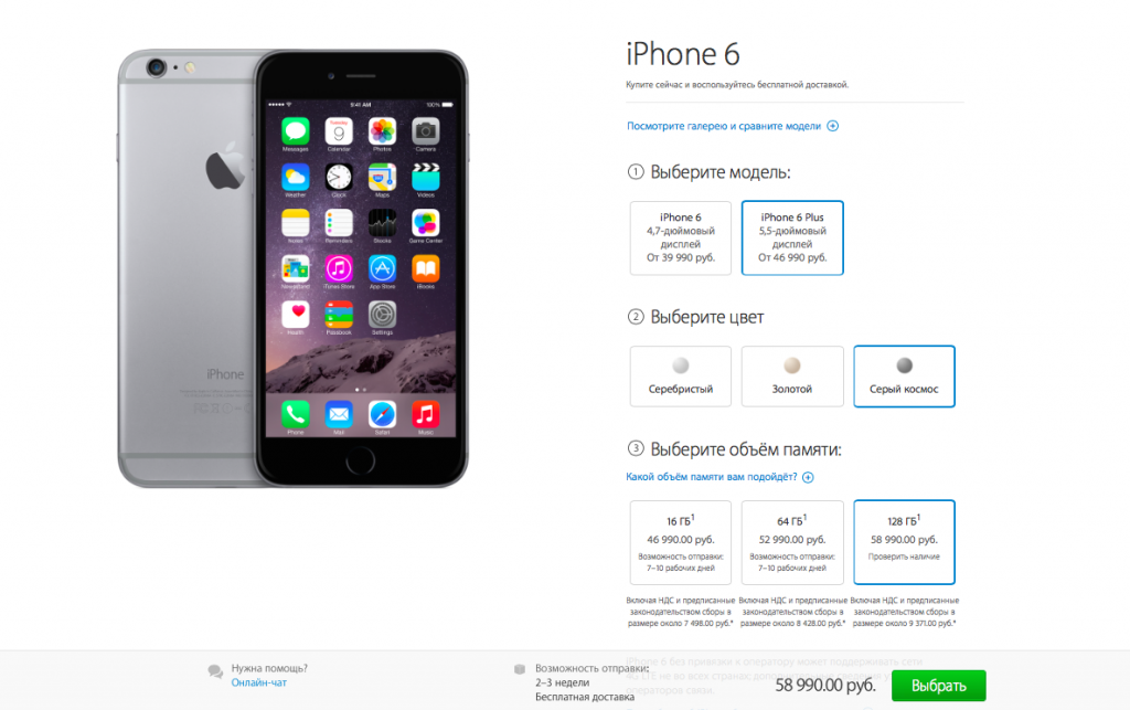 2014-11-26 14-48-53 iPhone 6 Plus 128 ГБ, «серый космос» без привязки к оператору — Apple Store (Российская Федерация) Опубликовано26/11/2014 1024 × 643